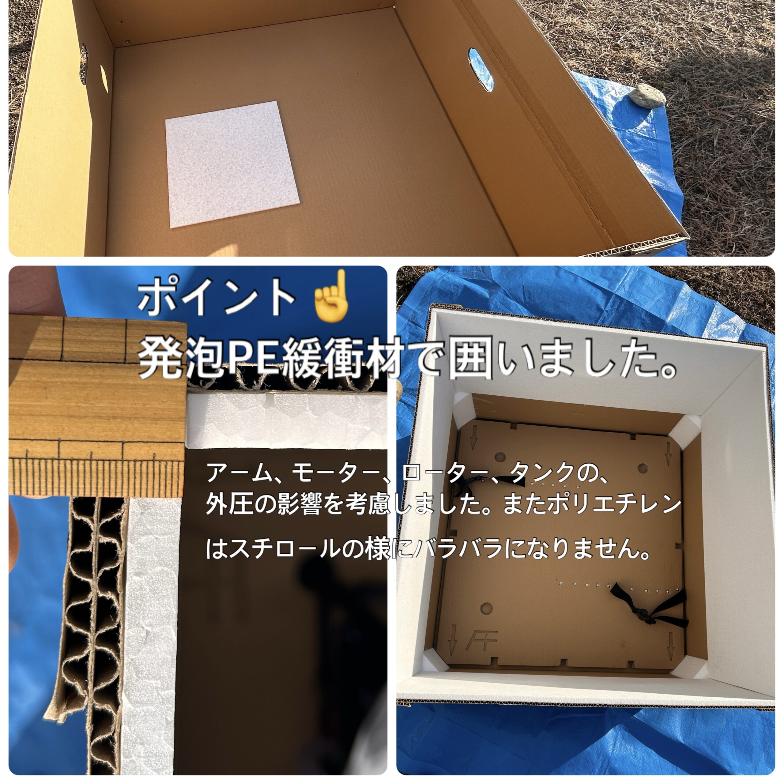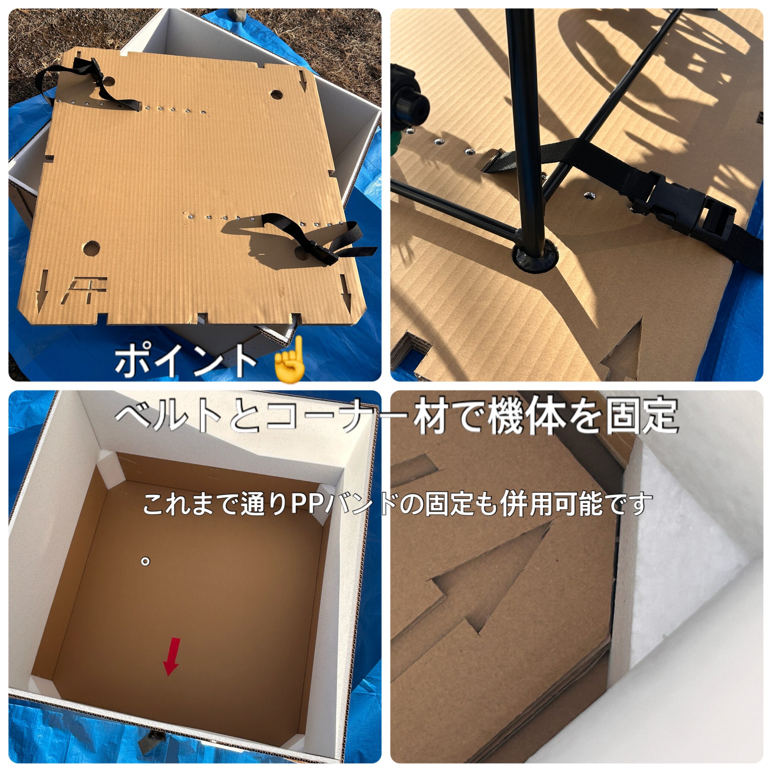 ◆アグリフライヤーFF /収納・搬送ケースです。最終試作品(画像)が出来上がりました。完成品はプラダン5㎜1000g品です。外部にて検証後、お求めやすい価格発表予定です。 最終試作品です。完成品はプラダン5㎜となります。 収納状態です。 リベット留め、強度と寿命を優先しました。 ベルトとコーナー材で固定 外部接触部には緩衝材 ◆オリジナルプラダンケース作成致します小ロットオーダー賜ります。リベット加工・熱シール加工・積み重ね用コーナー部材・ベルト取付・各種緩衝材など。農機具の保管やドローンの輸送を想定し、強度と実用性を重視しています。オリジナル印刷も可能です。 農家のお手伝いでは、前職(包装梱包部材扱い)のノウハウを活かしています。まずは自分自身が安心して使えるケースを作りました。じっくりと、良い製品を作らせて頂きたいと考えています。
